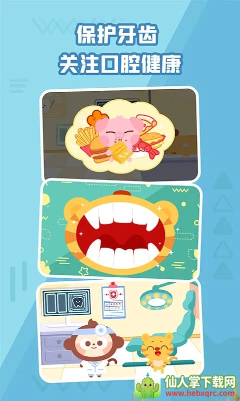 3. 克服恐惧:以卡通可爱的画面真实模拟医院拔牙洗牙补牙等场景,帮助宝宝理解牙医的工作,从而减少恐惧。