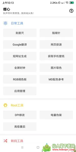 噬心工具箱是实用工具集合,功能丰富,内存小。涵盖生活、工作、娱乐多方面,如测量、查询、提取等。操作简单,可按需下载升级,免费使用,像刻度尺、壁纸获取、RGB调色等工具助力日常操作。