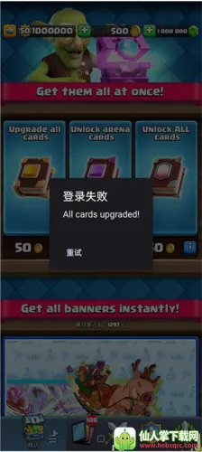 Nulls Royale是一款超好玩的策略游戏。在这里,你能经营城市,自由布阵设防御阵地抵御敌人攻击,还能加入公会共同御敌。游戏亮点多多,可实时挑战全球玩家夺奖杯,赢宝箱解锁奖励、收集升级卡牌,摧毁敌军塔楼赢皇冠宝箱,打造升级卡牌收藏,精心设计牌组击败对手,在多个竞技场登顶,组建部落分享卡牌,与部落成员和好友私人对决,在TV Royale学习战术。其特色包括多变的策略体验,地理位置、移速控制、兵种搭配克制都会影响胜负;超强社交属性,加入部落有奖励,玩家可互相捐卡获经验金币;玩法独特,对战双方从牌库选8张组成卡组,战场为双线模式。想体验这款精彩游戏?下面为你介绍下载教程:先下载安装好nullsroyale最新版,进入点击左下角商城,购买三本书,虽会出现网络断开连接情况,重新进入购买就行,最后就能看到所有卡牌和道具一键满级啦!快来下载开启精彩策略之旅吧!