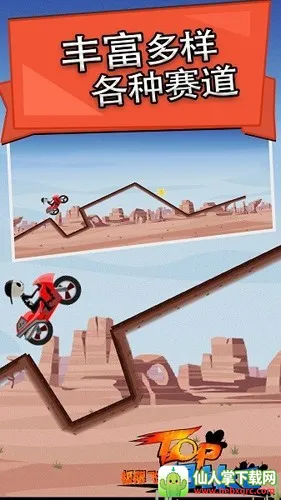 游戏特色满满,玩法操作简单易上手,能让你轻松做出炫酷特技动作拿高分。有80多个关卡等你挑战,每个关卡都有各种陷阱和障碍,很考验技术。商店里还有10种炫酷摩托车可解锁使用,每辆外观个性,驾驶起来乐趣十足。而且画面精致细腻,音效逼真,给你超爽的赛车体验。在这里,你可以尽情享受极限飞车漂移的快感,展示你的驾驶技巧,快来下载体验吧!