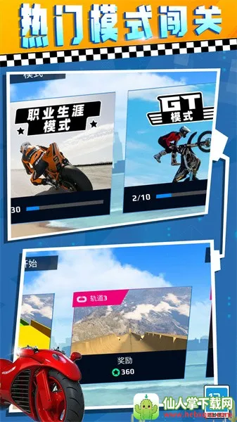 如果你喜欢极限飞车漂移的刺激体验,那这款游戏绝对适合你!它是一款超精彩的休闲娱乐摩托车闯关游戏。操作简单,通过点击屏幕和倾斜手机就能轻松控制摩托车前行。在游戏里,你能驾驶摩托车穿越多样赛道,做出各种炫酷的飞车特技,超有成就感。