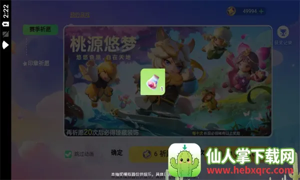 如果你是元梦之星的玩家,想体验抽奖乐趣又不想消耗实际资源,那元梦之星抽奖模拟器绝对适合你!它能真实再现游戏内抽奖环节,让你无需登录账号就能畅快抽奖。安装后直接点击进入,不用关联游戏账号。这里有赛季祈愿和印章祈愿两种模式,你可以挑选感兴趣的奖池,不同奖池奖励不同。点击界面右下的祈愿按钮就能开始抽取,想单次抽就点祈愿1次,想连抽就点祈愿10次。要是印章数量不足,点击右上角加号可自行补充继续抽奖。它高度模仿游戏抽奖界面与动画,操作简单,轻触屏幕就行。还支持自由切换多个奖池,中奖几率严格参照官方设置。免登录直接用,方便随时体验,提供无限抽奖机会,画面精致,奖品种类丰富,连续抽奖超解压,能让你尽情享受抽取奖励的乐趣,满足收集和探索愿望,快来试试吧!