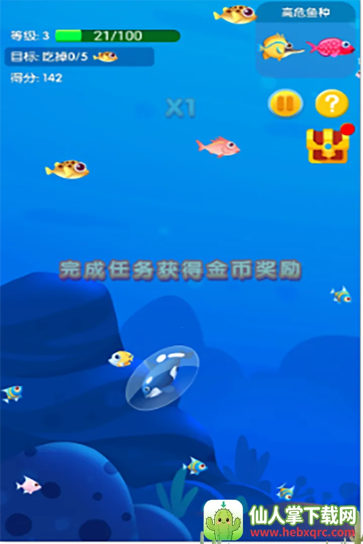精彩的游戏玩法:玩家将扮演控制一条鱼,通过不断吞噬比自己小的其他鱼来不断变大,最后成为水域中最大最强的鱼。游戏中有着非常丰富的关卡内容设计,多元化的关卡挑战,随时都可以进行闯关。