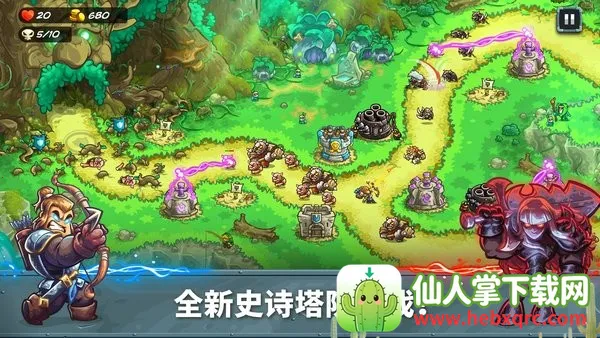 王国保卫战5联盟是经典塔防游戏续作,延续前作世界观剧情。玩家操控双英雄,有超27种防御塔,多种地形玩法。可免费使用英雄,还有无限金币奖励,快来体验精彩塔防对决。