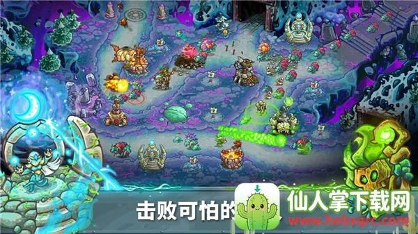 2. 特色防御塔与英雄系统:有超过27种各具特色的防御塔等待解锁运用,可自由搭配上阵,每种防御塔都有独特攻击方式。游戏中有12位史诗英雄可供选择,每个英雄都带有独特天赋树和技能,玩家能同时使用两位英雄进行游戏,并通过升级释放其全部力量和能力。