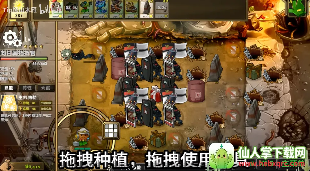 2. 创新操作体验:手套无冷却可灵活拖拽植物调整位置,僵尸掉落阳光助升级,阵亡植物消耗阳光能立即复活,操作更灵活。