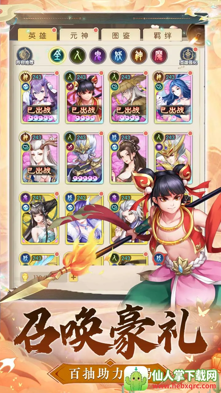 福利超丰厚:上线送vip6、10w仙玉、288w金币、千元充值卡等。创角闯关大礼送传说英雄妲己及100连抽。还有特制自定义英雄成长礼包,闯关再送6000抽,送满星孟婆全套满星装备。活跃每天送大量充值卡和抽奖券。
