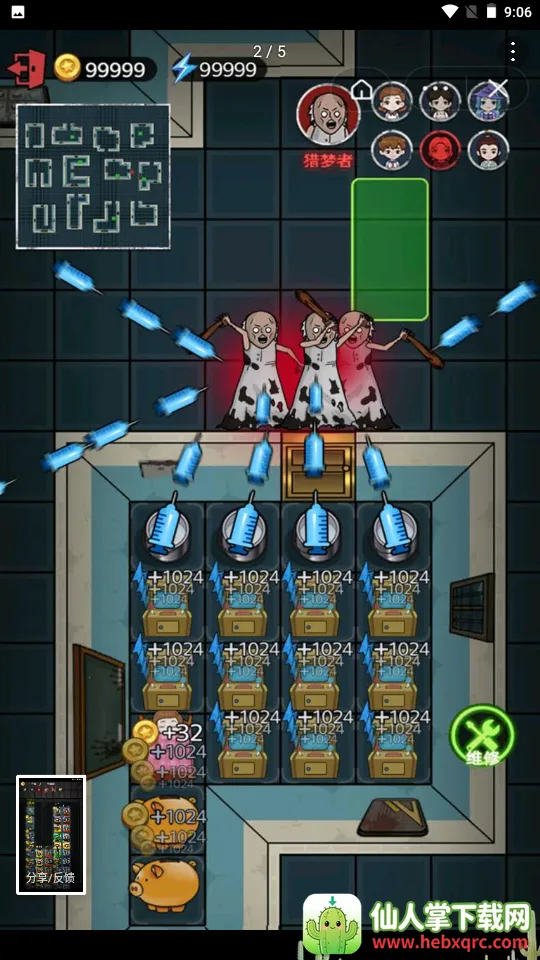 在猛鬼来袭这款超刺激的策略塔防游戏里,有预言家、猎人等多种角色。预言家能提前洞悉猛鬼动向,助你提前布局防御;猎人则可凭借强大能力直接猎杀猛鬼。玩家要合理安排阵容,利用各种塔防设施和角色技能,抵御一波又一波猛鬼进攻。游戏玩法丰富,进入游戏后,点击开始、准备,等人齐后找房间躺下,拖动武器到方格,不断刷新获取更好武器,波数完成还能选技能,觉得门不结实可提升等级。优先升级床能提高金币产出,合理布局防御设施,联合队友击杀猛鬼。游戏通过高品质画面和逼真音效营造恐怖氛围,还有多样地图场景和丰富玩法模式,能让你在解谜搜集道具闯关过程中感受多样乐趣,快来体验吧!