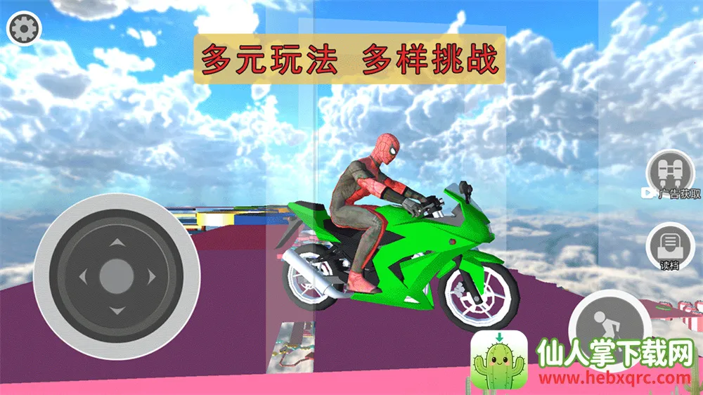 高度自由的驾驶体验:玩家可化身蜘蛛侠骑着摩托车在开放的城市环境中自由探索,穿梭于高楼大厦之间,感受飞车的极速快感,体验高度自由的驾驶乐趣。