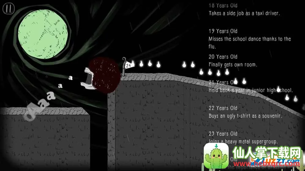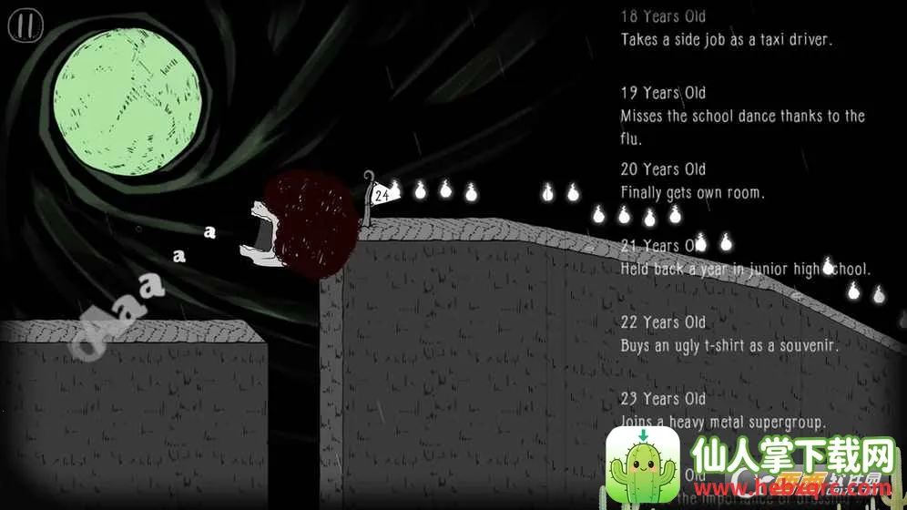 2. 内容丰富多样:有众多精彩关卡等待挑战,每个关卡都有不同的场景和障碍。还能收集鬼火组合出新的人头,右边屏幕会显示头颅每个年龄随机发生的事件,如奇葩的生活经历,像5岁加入直销、8岁进入保险公司等,增加了游戏的趣味性。