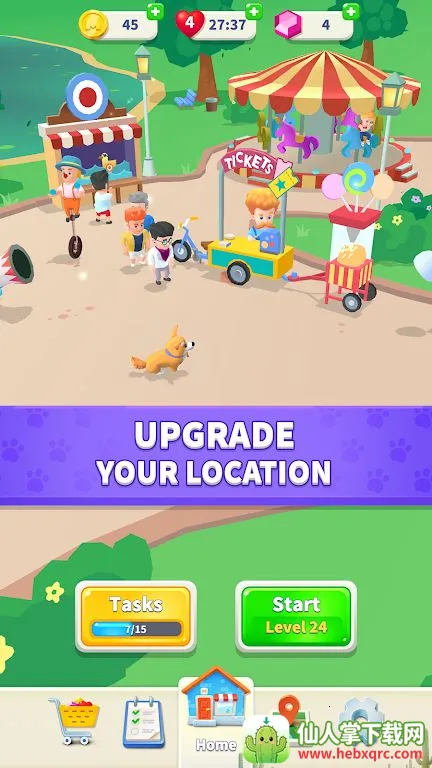 3. 逐步解锁商业地点:游戏中的每个地点都有 15 种不同道具可用宝石解锁,每种道具还有三种升级项目,分别用宝石、金币和完成特殊挑战关卡来升级。将道具升级到至少一星级,就能解锁下一个地点,跟随麦克和米乐开启新的经商冒险章节。