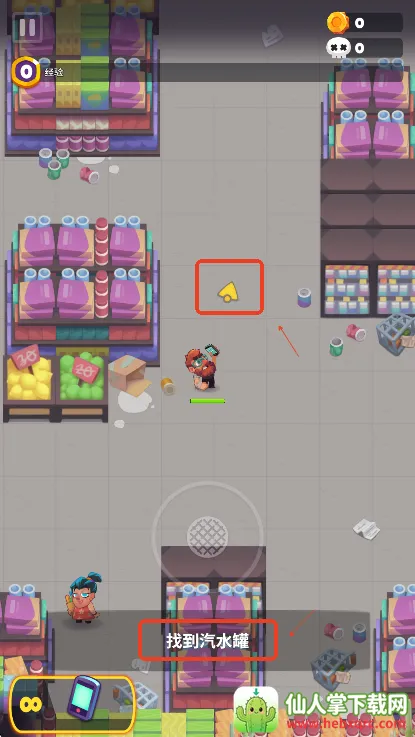 第一步,找到汽水罐,玩家需要跟着黄色箭头走