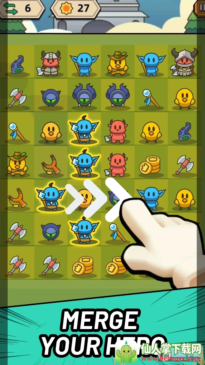 合合合英雄是融合塔防消除与Roguelike元素的休闲冒险手游。玩家通过三消合成英雄组建小队对战,有多种玩法模式,角色丰富且技能相生相克,需合理搭配,还能全球竞技、社交互动。
