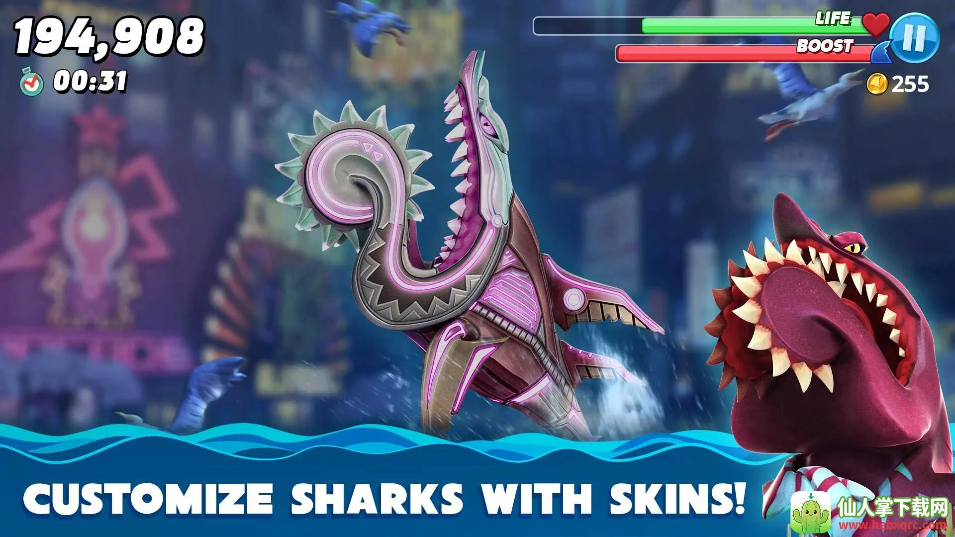 1、丰富多样的鲨鱼角色:游戏提供多种不同鲨鱼供玩家选择,每种都有独特技能与属性,可按喜好挑选并升级,体验各异的游戏乐趣。