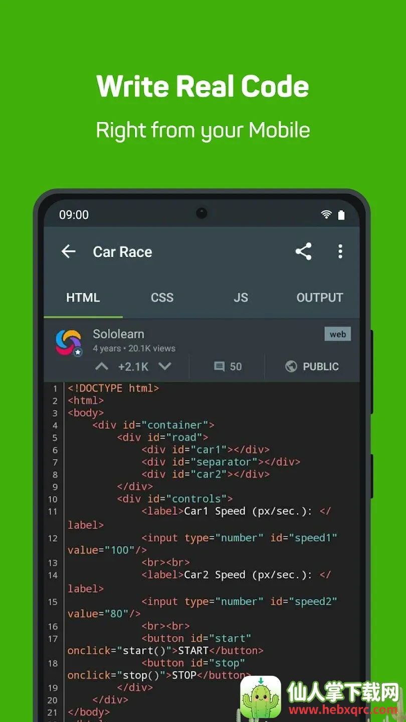 1. 功能强大的移动端代码编辑器,无需额外设置就能在手机上编写、执行和分享代码,随时随地学编程。