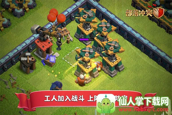 2. 激烈的全球玩家对战:能与全球玩家互动,加入部落参与部落对战,与其他部落一较高下;也可进行单人模式对战,攻击随机分配的其他玩家基地。通过对战提升排名,夺取奖杯,感受竞技乐趣。