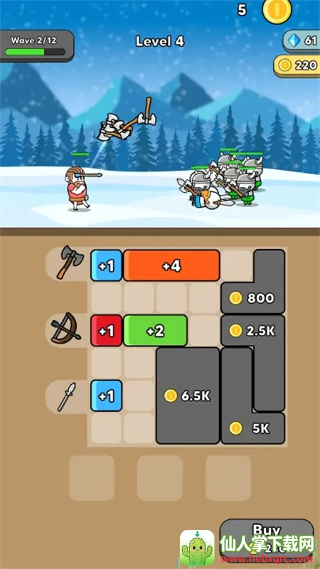 丰富的游戏玩法:游戏融合了轻度战斗、资源收集、合成、塔防等多种玩法。玩家既能操控角色战斗,又能收集资源提升能力,还能通过合成方块强化武器,策略性十足。