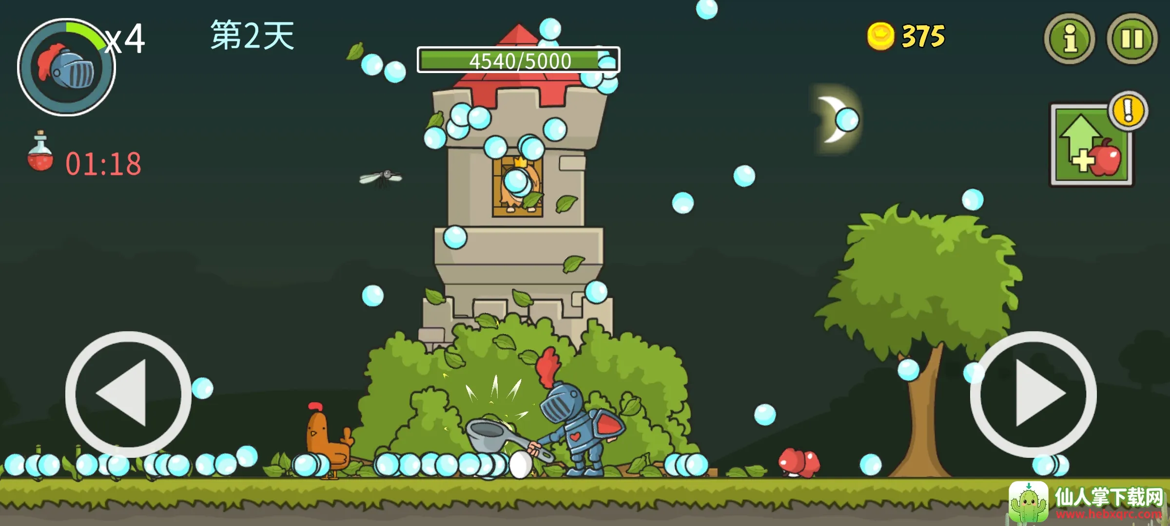 2. 策略性玩法:要摧毁高塔,还需收集食物增强英雄力量,运用策略才能顺利完成任务。
