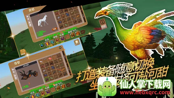 丰富玩法选择:游戏将流行的3D方块画面沙盒探索游戏与令人兴奋和上瘾的角色扮演游戏元素相结合。玩家可以完成征服各种生物群落的任务,成为世界上最伟大的战士;建立据点,遇到各种各样的生物,战斗boss怪物,并挖掘宝贵的资源来升级武器,获得更好的装备,创造各种道具来召唤各种怪物,包括龙。