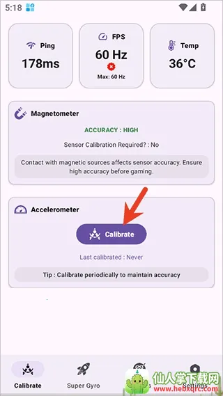 2、进入设置界面,找到陀螺仪校准选项,对您的设备传感器进行精确校准