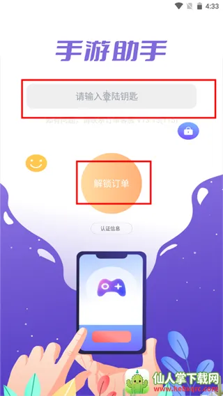 2、随后打开手游助手,进入输秘钥界面,输入已获得的秘钥。