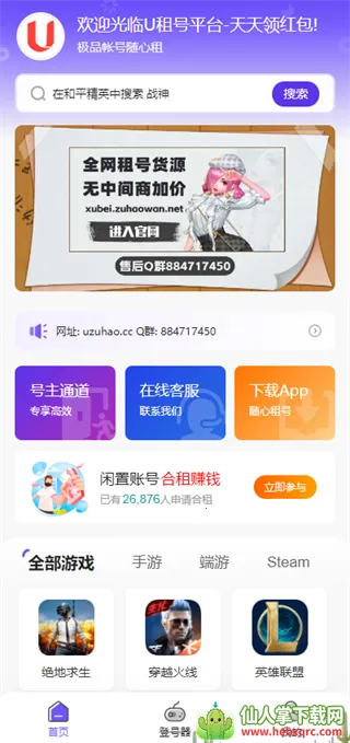 2、游戏体验优:游戏内有不错的优化与加速,让租号用户能更好享受游戏。汇聚人气热游,网罗全网热门游戏,手游端游页游影视vip网游加速器等应有尽有,满足多样需求。