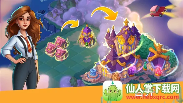 2. 精彩剧情驱动:有着迷人的故事线,涵盖神秘、爱情、背叛等元素。玩家跟随女巫金妮揭开小镇诅咒之谜,每修复一座建筑解锁一段记忆,叙事与建造深度融合,赋予合成行为明确意义,让玩家沉浸其中。