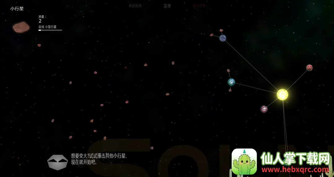 想知道怎么玩太阳系行星2吗?这里有超详细攻略!首先在本站下载安装游戏,点击打开并开始。进入游戏后,手指按住屏幕滑动就能移动行星,左上角能看到行星升级进度。点击菜单按钮可暂停游戏并调出菜单,还能在菜单中重生为其他对象,跟随游戏中的箭头可寻找任务。