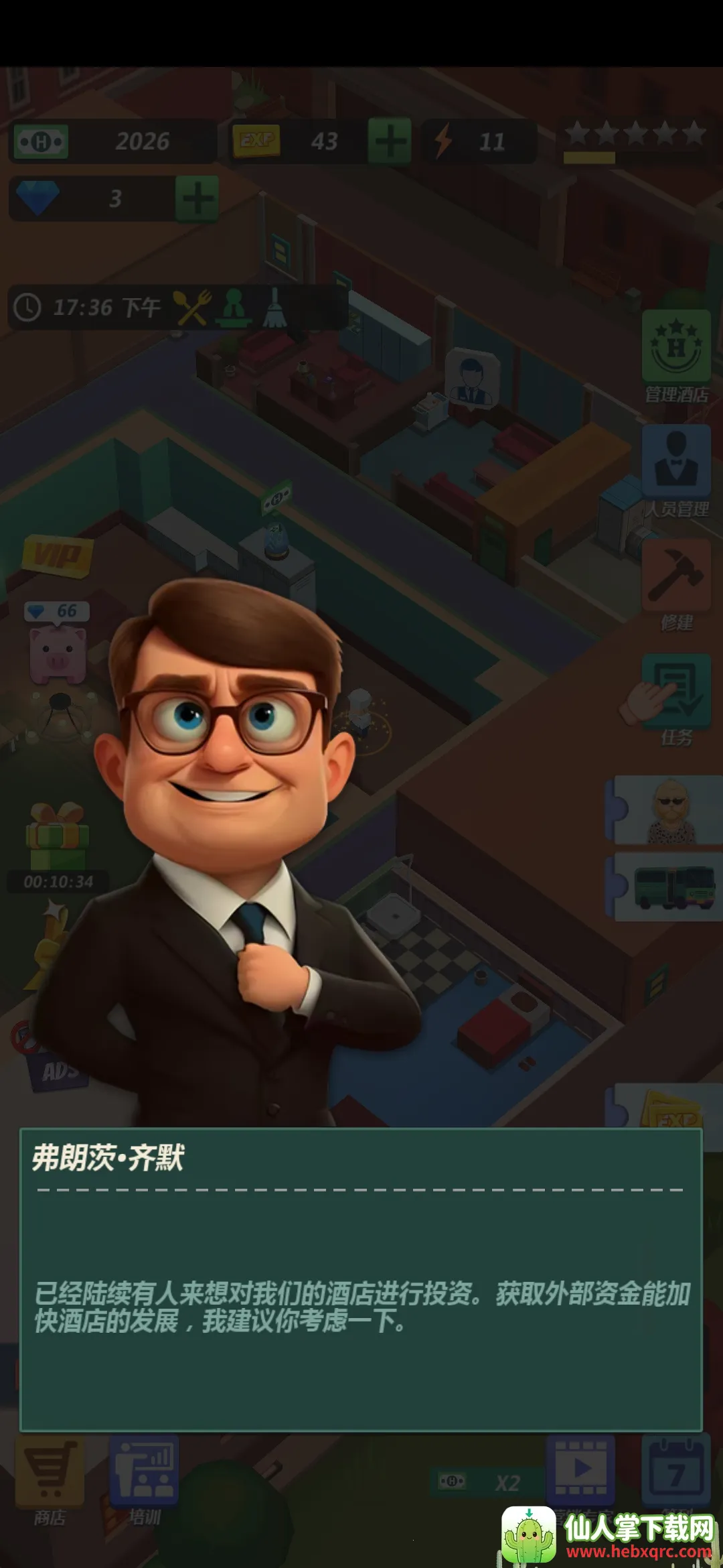 1. 融合模拟与放置玩法,带来独特体验,让你尽情打造酒店帝国。