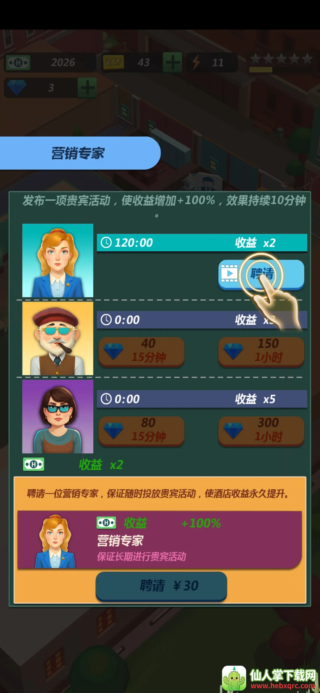 4. 无限可能:可不断扩大帝国、升级设施、吸引贵宾客人,明智管理资源、雇佣员工,让酒店成为全球旅行者首选目的地。