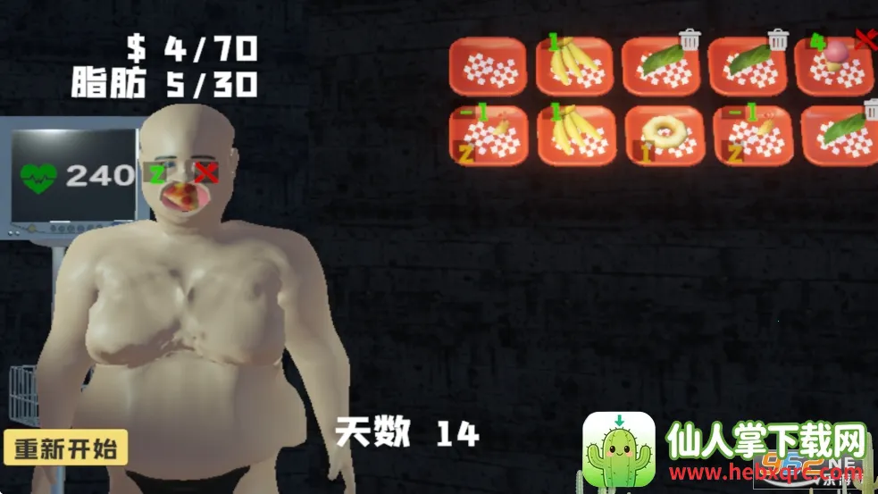 大胃袋模拟器是一款肉鸽类恶搞游戏,玩家扮演瘦骨怪物不断进食变胖,要注意承受极限。有多种食物,各有效果,还能通过比赛解锁新内容,含主播成长、粉丝互动等玩法,操作轻松,乐趣十足。